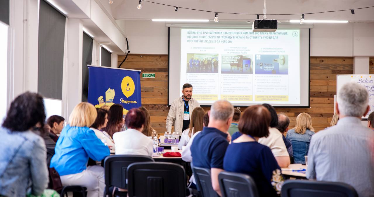 More than 50 Mariupol's residence took part in the meeting. Together with representatives of the City Council, they discussed a plan of quick action after the de-occupation - Fast Recovery Plan and the main stages of the city revival plan. Participants were able to work in groups and set priorities together that need primary attention immediately after the city.